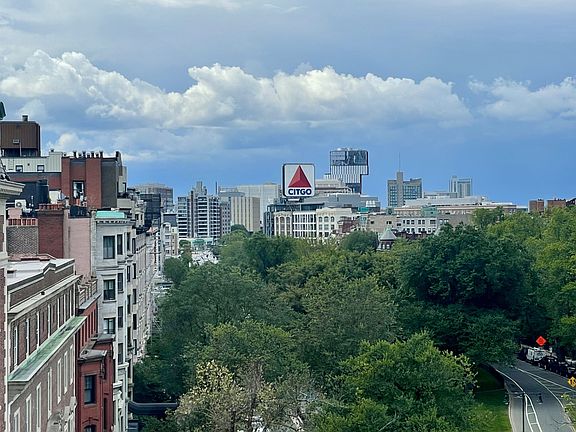 New Listing. September move in. Back Bay. Prime + much sought after Commonwealth Ave. Gorgeous Top floor, Front facing, Corner home with Incredible city views from every window. See view pics here including the iconic Citgo sign + a peak at the Charles River. Elevator. Heat + Hot water included. Large inviting living room with tall ceilings, hardwoods, decorative fireplace + big windows with 2 exposures providing beautiful natural light. Sleek updated kitchen with stone breakfast bar/countertops, stainless steel appliances with gas cooking, lovely cabinetry + a spectacular architectural rounded stain glass window with a 2nd decorative fireplace. Large bedroom with double closet. Sleek marble bath with intricate tile work and updated fixtures. Beautifully updated lobby w 2 elevator banks. Laundry right out your door on same floor. No pets. No smoking. Live in the vibrant + much sought after Back Bay neighborhood near Comm Ave Mall, Charles River, Newbury St shops, dining + more outside your door.