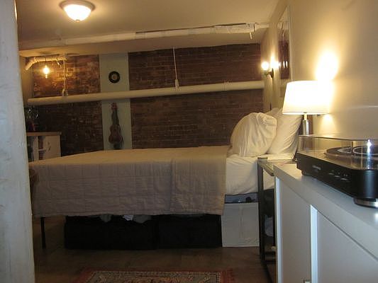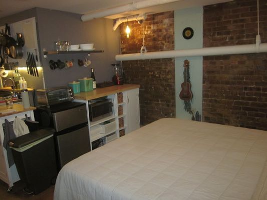 Nice Studio Exposed Brick Wall small Kicthen Fridge Bathroom With Shower Close To Super Markets Laundromat Restaurants @ The Hewes JMZ Stop Walk To Lorimer L And Broadway G Stop Close To Williamsburg Bridge Avil Imed No Pets To View Call Me