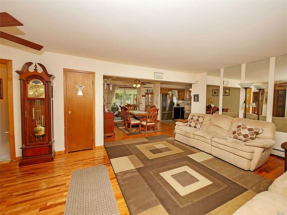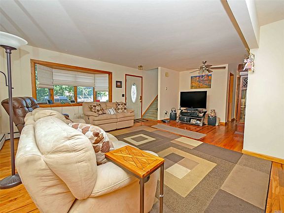 Many possibilities with this beautiful 4 Bed 2.5 Bath Two Story Home. Upper level with separate outside entrance creates the possibility for an accessory apartment with proper permits. Features central air on 1st floor, Solar Panels, Hardwood Floors, Sprinklers, Sun Room, Pellet Stove and much more. Beautiful manicured grounds includes Koi pond. Well maintained throughout! Close to major highways and Train Station. Taxes with Star 12,374. Taxes are in the process of being grieved. Sachem Schools! A must see!
