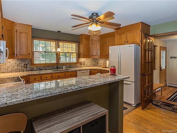 Enchanting Cape that Welcomes you with a tree lined fantastic yard and beautiful landscaping that bursts with color throughout the season. Unique layout with a flexible floor plan. The formal living room with french doors can easily convert to a home office. Updated kitchen with custom oak cabinetry granite counter tops, breakfast bar, and countertop lighting. Conversation is easy with the kitchen connecting to the family room with wood burning (or propane hookup fireplace that has a slider that has access to the side paver patio. The side covered porch enters into the spacious mud room with half bath. Upstairs has the generous master bedroom with 2 large closets and a private full bath with shower. 2 additional bedrooms and a main bath completes the 2nd level. Attached 2-car garage has a side door that open to the chain fenced in area perfect for the furry family members. Full basement is perfect for a workshop or future expansion. Level yard with a freshly painted garden shed and a yard that attracts lots of wildlife including blue birds, monarch butterflies, and even the neighboring turtles that nest in the springtime New septic tank and D-Box installed 12/8/2020. Truly a Gardener's Delight that Must be Seen