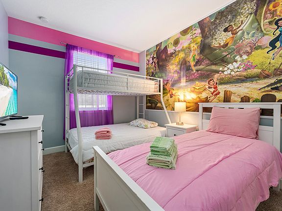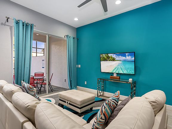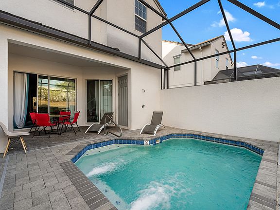 Looking for an escapade in the Enclave at Festival? This beautiful townhouse offers your very own slice of paradise, just minutes away from world-class amenities and attractions like Disney and Universal. With five spacious themed bedrooms and five bathrooms, this home provides ample space for relaxation and enjoyment. The large living area, free washer and dryer, and private pool with an option to add heat make it a perfect retreat. The townhouse features a large full kitchen with stainless steel appliances and spacious indoor dining areas, complemented by outdoor pool loungers for relaxation. Enjoy free access to the community amenity center and clubhouse, enhancing your stay with additional leisure options. If you would like to add pool heating to your reservation, the cost is $35 per day of stay, which will be invoiced separately. We kindly ask for at least a week's notice to coordinate this amenity. During inclement weather, we do not advise using the pool. Festival at ChampionsGate is a community in Davenport, Florida, located just a few minutes away from Disney's Magic Kingdom. Situated off I-4 South in the ChampionsGate area, it is surrounded by 200 acres of lush natural Florida woodlands and lakes. The family-friendly resort offers private gated neighborhoods and impressive amenities, including a resort-style heated pool, kids' water park, fitness center, and more. Check-out time is 10 AM. To prepare the property for the next guests, housekeeping is scheduled to arrive promptly upon check-out. Late check-outs may incur a fee of up to $300. The home is professionally cleaned and sanitized between each guest, and it is a self-catering home, so we do not refill any supplies during your stay. Each bathroom will have basic toiletries, and the kitchen will have some essentials. If anything is missing, please let us know immediately upon check-in so we can arrange restocking. A laptop computer is not included.