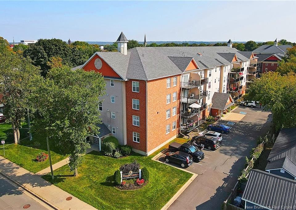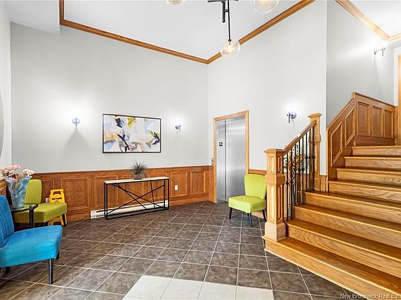 A bright and spacious 2-bedroom, 1-bath top-floor condo in Regency Landing! This well established building is located on a quiet street in the heart of downtown Fredericton just minutes from all amenities — shops, restaurants, and entertainment — and only steps from Fredericton’s scenic walking and biking trail system. This building offers outstanding amenities, including a welcoming foyer with elevator access, a fitness room with bathroom, asocial room with full kitchen, and secure access throughout. The underground heated parking includes storage, a car wash bay, and secure bike storage—everything you need for both comfort and convenience. Inside the unit the vaulted ceilings in the living room and patio doors to the balcony make the space feel so open and inviting. Enjoy the convenience of in-suite laundry and stay comfortable year-round with the ductless heat pump/AC. This opportunity is perfect for those seeking a low-maintenance lifestyle without sacrificing location or amenities! Note: re-sale/rental assessment fee of $500 payable to the corporation at closing.