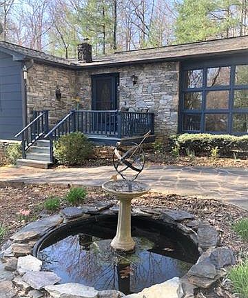 A gardener's and pond-lover's delight, this charming, stone-trimmed ranch is tucked on a knoll on 1.4 acres (2 lots) of vinca, azaleas & Japanese Maples. Custom stone work on the house exterior & stone path surrounding the home add to appeal. This 1978 home has a gracious floor plan w/large living room with tiled fireplace, a large kitchen & good flow for entertaining. Completing the main floor's 2,000 sq ft of living space are 4BR and 2.5 BAs. A Library and full bath add 400 sq ft on the LL lower w/outside entrance. Deck overlooks the woodsy backyard & small man-made water feature. Ample storage, wood working or craft space in basement. Adjacent parcel w/a 60 ft spring-fed pond qualifies as a National Wildlife Certified Habitat, w/an official Audubon plaque. Bring your love of nature, wildlife & privacy & add your updates to make this your treasure. 1 mile to Brevard Athletic Club & 10min to the famous summer Brevard Music Center. Seller is offering a home warranty through June 2020.