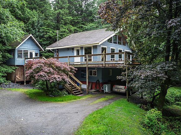 This 1BR/1BA home has a 1BR/1BA apartment and is situated on a large lot ( over 1 acre) offering plenty of parking. Enjoy a big sunny deck. Newer windows , loft area, detached laundry & storage. Lovely park like setting with garden area.