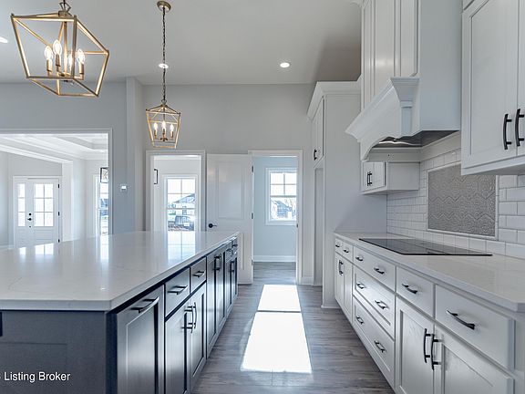 Situated on a scenic lot and ready for you to be your dream home!!! This beautiful custom-built walkout home is located on a desirable lot in the neighborhood of Goeble Grossing and backs up to picturesque pond view. This split bedroom ranch home is well designed with an open floor plan, 3 bedrooms, 2 full and 1 half bathrooms and boast fabulous finishes. Gourmet kitchen with custom cabinetry, quartz countertops, butler pantry with butcher block countertop, large 9ft island, premium LVP floor. The primary suite is stunning with oversized custom shower, his/her vanity connected to linen closet, freestanding soaking tub and huge walk in closet with entry into laundry-room. Kids study area located between bedrooms. Large covered deck and huge basemen