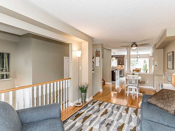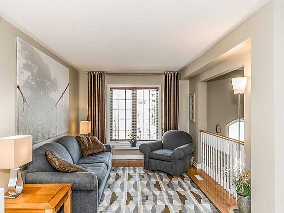 Absolutely Gorgeous End Unit Townhome Located In High Demand Enclave Of Homes! Open Concept Living/Dining Room With Hardwood Flooring. Exceptional Kitchen With Granite Counters, Centre Island, Pantry & Breakfast Bar. Family-Sized Breakfast Area With Walk-Out To Deck. Spacious Master Bedroom With Luxurious 4 Piece Ensuite. Superb Rec Room With Fireplace. Private Rear Yard Backing To Open Space Provides A Tranquil Retreat. Exquisite Decor. A Must See Home!