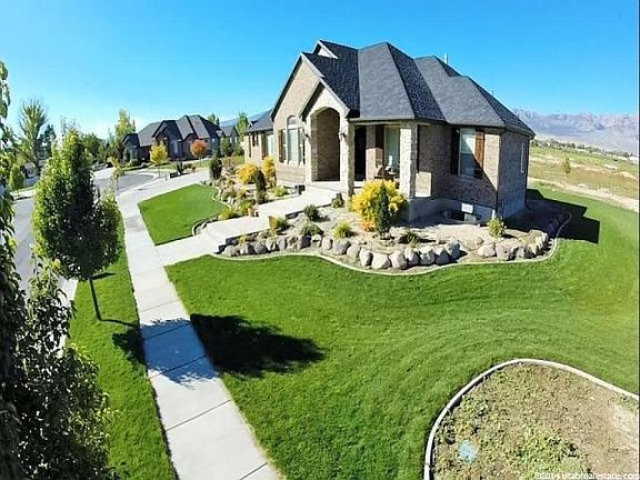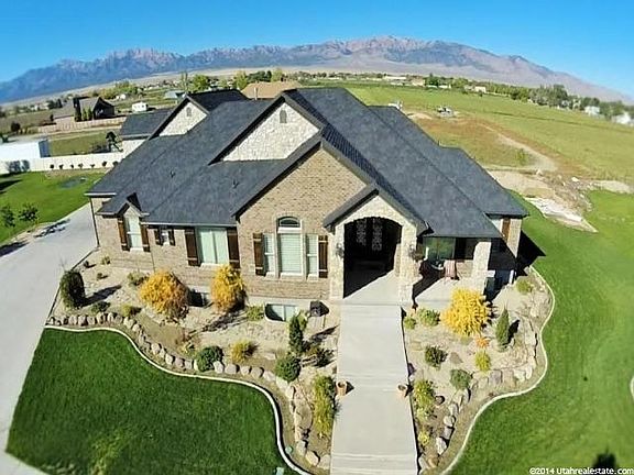362 Ginny Circle, Grantsville UT 84029. Gorgeous Custom Home with amazing upgrades. Home features crown molding, hardwood floors with travertine inserts, wrought iron front doors, plantation shutters throughout, faux finish paint, gas & electric stove and dryer. Beautiful fireplace in Master Suite with coffered ceilings with rope lighting. Large walk-in closets with his and her sinks, jetted tub and large seated shower. Large gourmet kitchen with granite back splash and pull out cupboards. Walk out Basement features large theater room, 2 large storage rooms with room for pool table and ping pong table in family room. Stubbed for full kitchen in basement. Gym features rubberized mat flooring great for exercise room or dance studio. RV Parking. Too much to list..a must see today!