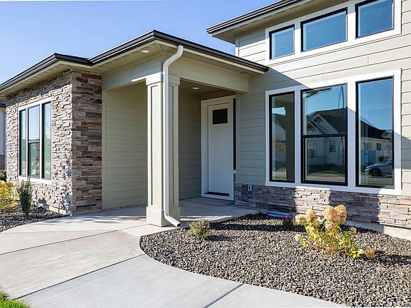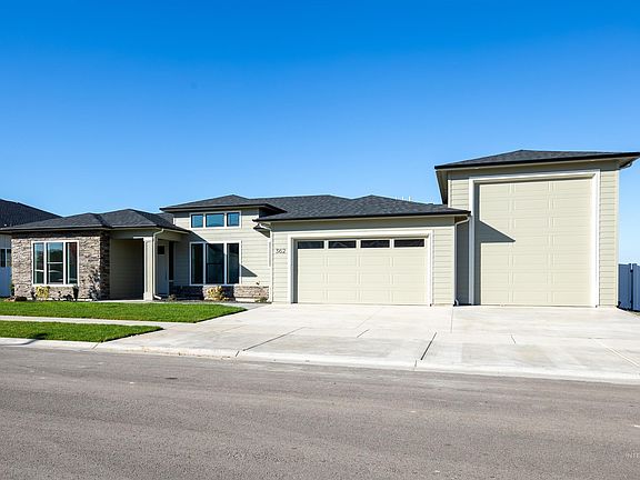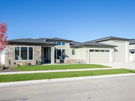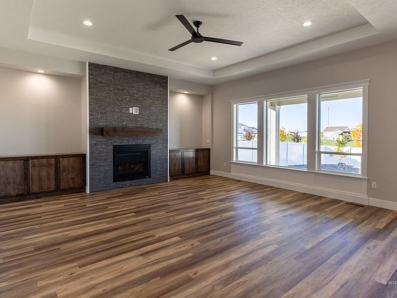 Awesome Jump Creek plan by Rugged Terrain Homes. This split bedroom plan boasts a beautiful primary retreat with a massive walk-in closet, his and hers vanities with tasteful colors and hard surfaces/quartz/tile throughout including the laundry room. Floor to ceiling custom kitchen cabinets with soft close drawers, undermount lighting and butler's pantry. Living room features coffered ceiling and cozy fireplace flanked by built ins. Secondary bedrooms share a Jack & Jill full bath. Flex/media room w/insulated sound walls for tons of possibilities. Halo can lighting in Primary and Living Rm. AMAZING finished RV garage with fully insulated and separate tool room with own heater & circuit (plus pre-plumbed for sink), 4' LED lighting and tankless water heater. Garage loft has data wiring and views of the mountains. 36ft RV Garage w/work area, multiple circuits including 50Amp plug. Main portion of garage pre-plumbed & vented for gas heater. Good sized covered back patio, space for garden with separate sprinkler zone. New subdivision Shafer View Terrace-complete with tot play lot, pickleball court and picnic gazebo) along with views toward the foothills.