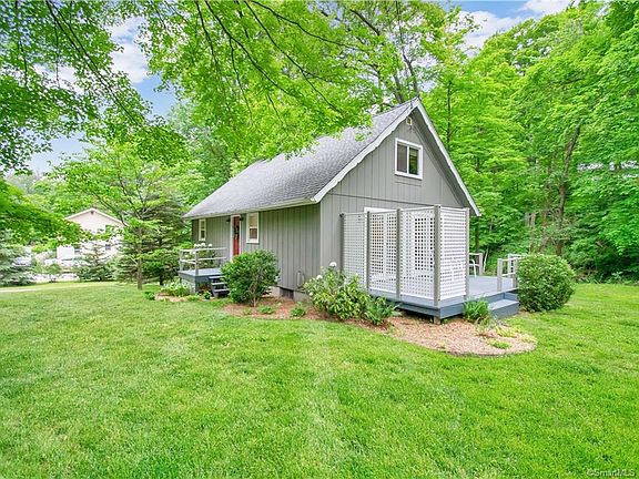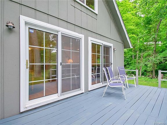 Just in time to enjoy the summer! You will feel like you are on vacation everyday in this tranquil home with open floor plan, wall of sliding glass windows and babbling brook in the back yard. Step inside and see the roomy kitchen with walk in pantry and flexible layout. Counter top has a piano hinge so it can be raised if front door access is needed. Living and dining area feature two sliding glass doors that lead out to a spacious deck with privacy screen. Enjoy the sounds of the babbling brook and nature views with plenty of room for outside entertaining. The main level also features two bedrooms and a full bath. Upstairs has two more large bedrooms and a half bath. Great storage in this home with walk in closet upstairs and dry basement. This home is within a short walking distance to Staffordville Lake and beach area and is no more than 10 minutes away from I-84. Easy commute to greater Hartford area, UCONN. and western Mass too! HIGHEST AND BEST DUE BY Monday, June 14th at 5 PM