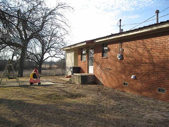 3 bedroom brick on almost 1 acre with beautiful view. Barn style storage building 8 X 10 . Pecan trees with water well. 1 car carport and walk in closets. Metal roof . Mineral oil rights will not go with property. Come furniture will remain. Propane tank.