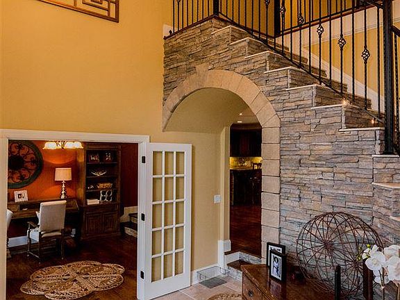 SUNSET VIEW...It's a must see! This beautiful home looks like a castle and has many unique features. Sitting pretty on 4 ACRES it offers all the privacy you could ever want. This home has 4 car garage parking, 2 cars on the main level and 2 cars in the basement. The beautiful glass and iron front door leads to a magnificent foyer. The foyer is 2-story and boast a stacked stone staircase and stacked stone arched opening. There are many upgrades such as: hardwood floors, custom moulding, travertine flooring, granite counter-tops, custom kitchen cabinets, custom plumbing fixtures and beautiful light fixtures. The main level has a formal dining room, family room open to the kitchen, half bath, master bedroom with luxury bath and laundry room. Upstairs are three bedrooms and two baths. The lower level is perfect for In-Law Suite, with a kitchen, bath and bedroom. Your family and friends with enjoy watching the sunset by the outdoor firepit. Come SEE...MOTIVATED SELLERS!