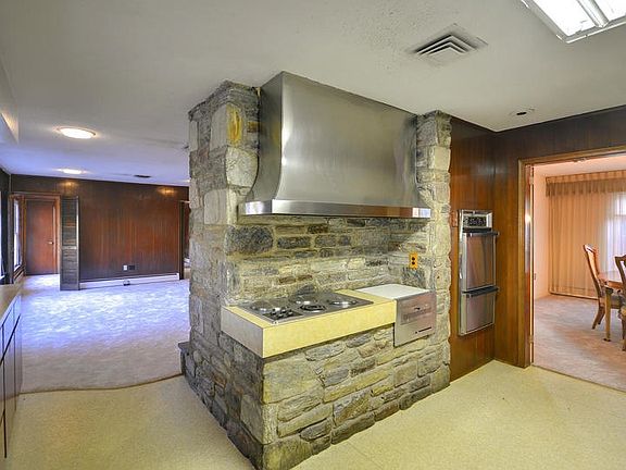 This fantastic brick Mid-Century Modern over-sided ranch is ready for you and was built with family and entertaining in mind. Enter through the foyer and find the generous sized formal living & dining rooms. The large spacious kitchen has plenty of cabinets, built in floor to ceiling stone stove cook-top with custom stainless exhaust & double wall ovens. The large bright family room features a beautiful stone wood burning fireplace. The home has 4 bedrooms. The huge master suite includes plenty of closet space and in-suite master bath. The large hall bath services the 2 bedrooms and the office/study or 4th bedroom. You will also find an additional full bath beyond the kitchen next to current laundry room. This space could be easily converted back to an in-law/au pair suite or 5th bedroom! The over-sized two car garage with indoor access completes this home. Positioned on about half an acre the back yard is flush with mature trees and shrubs for privacy and entertaining on the large covered patio. The home had all new carpet installed in 2014 through out.