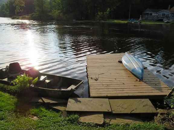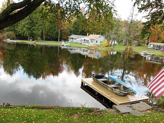 Lakefront! Use as year round or vacation home, wonderful relaxing setting on Foxton lake tucked quietly away. Enjoy lake views from the deck, fish off the dock, electric motor boats only.Open floor plan w/laundry/entry room, dining with sliders and wood stove. Elk Mtn close by along with State Game Lands.Take a look today. Additional Info: Foxton Lake approx 25 acres. Private drive with association maintenance, yearly association dues $100 to $150.