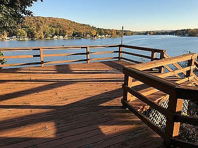 One of the largest LAKE FRONT, YEAR ROUND, HOME with 1274 sq. ft. to enjoy. Easily accessible lakefront with a dock. Super-sized deck overlooks Lime Lake, NY located in the Enchanted Mountains of Catt. County. Put your finishing touches inside with updating the way you would like such as flooring. Three bedrooms, living room, kitchen with dining area/appliances, full bath, laundry room with washer/dryer and a room leading to the back deck. Walkout basement, enclosed porch, interior freshly painted, energy efficient furnace, updated water well and public sewers are connected. Update this home the way you like it then enjoy your summers boating, fishing, water skiing, and swimming in a spring fed lake. Price Reduction from last yr. and no more available building lots with lake-frontage.