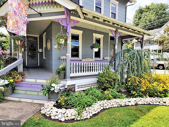 Stunning 4BR Victorian with a Wrap around Porch, Balcony off Main BR overlooking a meticulously manicured garden including a soothing Koi Pond w/waterfall in the rear. The painted Gingerbread Trim adds to the overall style and visual impact of the home. There's also a 900 sq ft oversized 2 Car Det Gar w/workshop & overhead storage, and a 15x12 shed. Step inside to find the same beautifully preserved trim, millworking, and details of the era throughout. Both 1st & 2nd floors have tall ceilings. Open feeling 1st floor allows great line of sight between the spacious rooms. The Kitchen boasts a center Island, gas cooking, plenty of cabinet space, a pantry, and a Breakfast nook overlooking the rear yard. The Dining Room has the turret shape typical of this style home, and sports double pocket doors between itself and the Comfortable Living Room. There are wood floors in the LR & DR, and Cork flooring in the Kitchen. Finishing off this level is the Laundry room and half bath. On the 2nd floor there are 3 Br's and a Full bath with a Tub/Shower. The Turret style Main Bedroom has access to a Balcony overlooking the garden in the rear. Wood floors in all Bedrooms & Hall, vinyl in the Bathroom. At the end of the hall are stairs to the 3rd floor and the 4th Bedroom. There are painted wood floors on this level. The Basement is roomy and has a walkout door to the back yard. It houses the utilities, and has generous workshop and storage areas. All of this within walking distance to the Sellersville Theatre, Washington House, and all downtown amenities. You must come and see it!