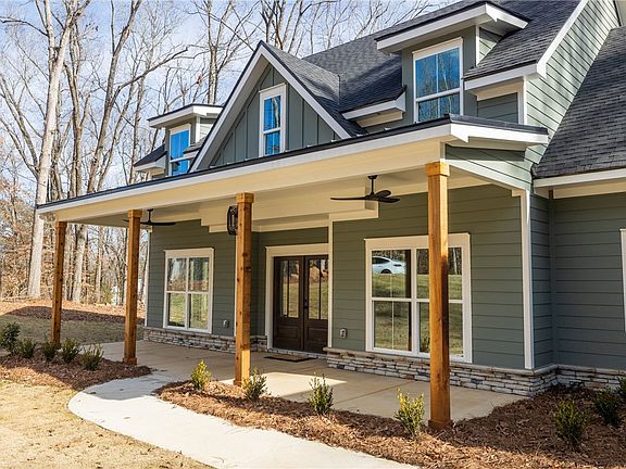 Stunning new construction located just steps to Lake Harding!Creek runs all along the property line to Lake Harding! This spacious home features 4 bedrooms, 3.5 bathrooms & a bonus room, making it perfect for families of all sizes! Inside, you'll find modern finishes like stainless steel appliances & granite countertops in the kitchen. The living areas are adorned with durable LVP flooring. Sealed with spray foam roof insulation and equipped with dual zone climate control, this home offers style and efficiency. The master suite, located on the main level, includes an ensuite bathroom with a walk-in shower, large soaking tub, dual vanity sinks, & plenty of closet space! Step out onto the two-story back porch to enjoy the peaceful surroundings & gorgeous lake views. The large backyard offers ample space for outdoor activities & relaxation. Easy access to public boat ramps & marinas, offering endless fun & recreational opportunities.