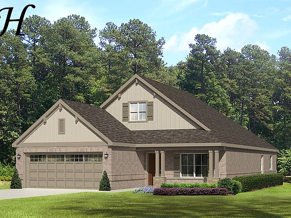 The Hampton H is a 4-sided brick one story open floor plan with constant appeal and elegant definitions. This 3 bedroom, 2 bathroom home features vaulted beamed ceiling and custom columns in the oversized great room, massive kitchen with upgraded stainless steel appliances and granite countertops. Dining area adjacent to kitchen. Master suite exudes seclusion with master bath that features garden/soaking tub, separate shower with glass door, double vanities, and walk-in closet. Outstanding layout with all bedrooms featuring privacy from the others. Subdivision amenities include community clubhouse, two lighted tennis courts, Olympic-sized pool, and community access to lake.
