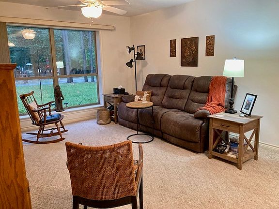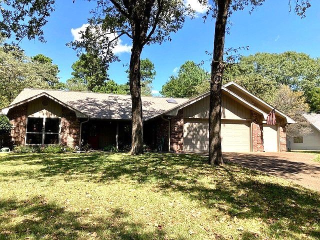 Traditional home set on a level lot in a guarded gated HOA community in the beautiful piney woods of East Texas. Enter through the decorative front door into a spacious entry. To your left is the light filled living room with a broad view of the front yard and mature oak and pine trees. On to the kitchen, family room and dining area. The pantry has roll out shelves with plenty of storage. The dining room has a skylight and there is a separate seating area. On out to the sun room to the spacious deck area. In season enjoy a 50' row of pink azaleas. Also, two rows of knockout roses and a vegetable garden. Sit on the deck, have a lemonade and enjoy the peace and quiet and the birds. Back into the two car garage adjoining golf cart garage. HVAC new in 2023. Holly Lake Ranch has many amenities: golf, pool, pickle ball, tennis, putt putt, disc golf, and a swim beach. Fish in two well stocked lakes with concrete boat ramp. Holly Lake Ranch is 50 minutes north of Tyler and 2 hours east of Dallas Love Field.