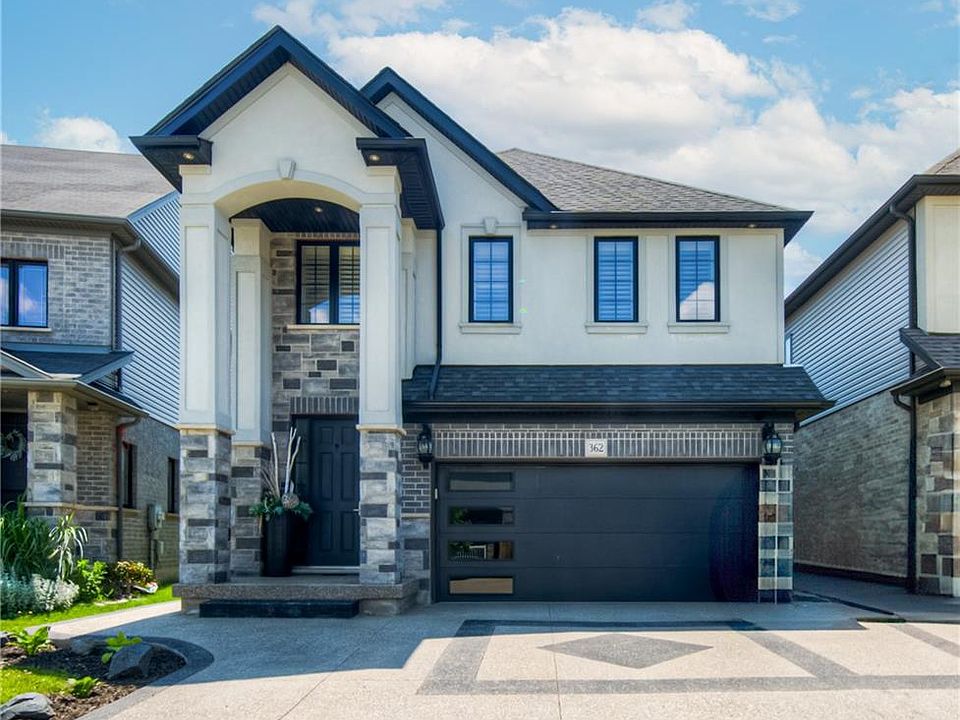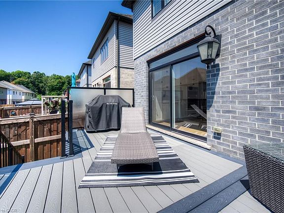 MODERN FAMILY LIVING STEPS TO THE 401. Nestled in one of Kitchener's most sought-after communities, this beautifully upgraded 4-bedroom, 3-bathroom home offers over 2,500 sq ft of thoughtful living space designed with today’s families in mind. Located just 3 minutes to the 401 and close to parks, top-rated schools, trails, and every convenience imaginable. From the moment you arrive, you’ll be impressed by the home’s modern curb appeal, oversized concrete driveway, and double-car garage. Step inside to an inviting open-concept main floor, freshly renovated in 2024, where sleek finishes and timeless design flow seamlessly. The heart of the home is the chef-inspired kitchen, boasting white shaker cabinetry with contrasting black hardware, quartz countertops, a walk-in pantry, and an oversized island perfect for hosting or daily family life. The living room offers a cozy retreat, highlighted by a stunning stone fireplace with rustic wood mantle, wide plank hardwood floors, and expansive windows that fill the space with natural light. Walk out to the private upper deck, ideal for morning coffee, evening entertaining, or relaxing in the sunshine. Upstairs, you’ll find all 4 bedrooms along with an additional upper family room—a flexible space perfect as a media room, kids' play area, or quiet reading nook. The primary suite is a true retreat featuring a large walk-in closet and a spa-like ensuite with dual sinks, soaker tub, and a glass-enclosed tiled shower. A second shared full bathroom with double vanity completes the upper level. The unspoiled basement offers endless possibilities to finish to your taste—whether that’s a home gym, office, or additional living space. This home has it all — modern finishes, an incredible layout, and an unbeatable location just steps to beautiful trails, perfect for walking, biking, or exploring nature.