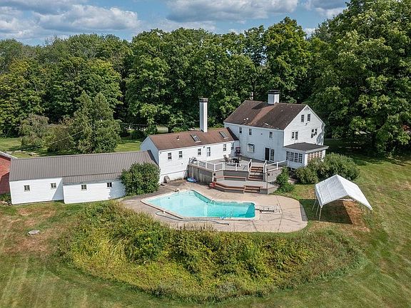 Once a working farm, the Riverslea Farm will be sold with 20 acres of land including a pond and frontage along the river. The main house has a flexible floor plan offering 3-4 bedrooms, a formal dining room and a casual eat in area off the kitchen and loads of charm. Large kitchen and living room perfect for entertaining complete with brick hearth and wood stove. The first floor also offers a summer room and a large addition that could be a 4th bedroom on the first floor or a wonderful family room/office. The primary bedroom on the second floor is quite large and was once two rooms, and now has a 3/4 bathroom and lots of natural light. There is a farm shop, a garage area for storage or cars and a large animal barn. Tucked on a side road and bordered by a scenic dirt road perfect for afternoon walks. Some work needs to be done to bring this farmhouse back to her glory days. The buyers will likely want to update the kitchen and baths. The pool will need some work but be worth it for the afternoon swim parties overlooking the pastures and the sunset swims. 1700 sq foot composite deck made for gatherings. Plenty of room to put in the garden of your dreams or have a small farm. TOWN OF EPPING HAS NOT UPDATED THE TAX MAP & CARD TO SHOW THE NEW SUBDIVISION PLAN (New plan is in the MLS) Online Mapping still shows old lot lines.