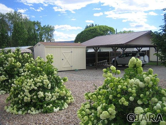 Perfect! NO HOA, located across the street from the walking trails, corner lot with RV parking, large 2 car carport, large shed, fenced front yard, private patio/BBQ area and nicely landscaped with trees, shrubs and small amount of grass to mow. Full sprinkler system and drip system to shrubs. Vinyl sided home with metal roof. Central air and nice updates throughout this home. Vinyl windows, wood laminate flooring, carpet, light fixtures, kitchen sink & counter tops, bathroom sink and tile, and tile in the laundry area. Great floor plan with open concept and very well cared for. Full appliance package is included.( Smooth top range/oven, dishwasher, refrigerator, washer and dryer) Easy to maintain and care for home. Great place to call home!