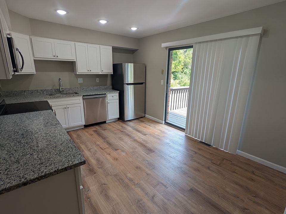 One year lease minimum. No application fees, but we do run background checks on all applicants. This is a non-smoking unit. Dogs and cats under 45lb may be considered with an additional $200 deposit and $25 a month fee. Owner pays trash, tenant is responsible for paying electric, water and sewage. Rental insurance is required. Our standard security deposit is $1,600 but could be more due to credit history. Some requirements are household income must be 2.5-3 times the amount of rent per month, no past evictions in the last 5 years, no felonies for anyone residing at the residence, no bankruptcy in the past 3 years and cannot owe money to past landlords or utility companies. This newly renovated townhome is located near downtown Saint Peters. This two bedroom, one and a half bath offers space and comfort. The main level has a nice open layout, with the living room leading to the kitchen and half-bath. The kitchen is equipped with all appliances including stove, microwave, refrigerator. A sliding glass door leads to a spacious deck right off the kitchen. Both bedrooms and full bath are located on the second floor, and both have nice sized closets with ceiling fans. There is no carpet, laminated hardwood floors go throughout the entire unit. The unfinished basement has a washer and dryer hookup available. There is plenty of storage space. Off-street parking is available. One year lease minimum. No application fees, but we do run background checks on all applicants. This is a non-smoking unit. Dogs and cats under 45lb may be considered with an additional $200 deposit and $25 a month fee. Owner pays trash, tenant is responsible for paying electric, water and sewage. Rental insurance is required. Our standard security deposit is $1,600 but could be more due to credit history. Some requirements are household income must be 2.5-3 times the amount of rent per month, no past evictions in the last 5 years, no felonies for anyone residing at the residence, no bankruptcy in the past 3 years and cannot owe money to past landlords or utility companies.