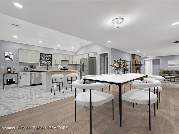 Welcome to 362 Pine Brook Rd. This property is not a drive by. It needs to be seen to be appreciated. You will be impressed when you drive up a long treelined driveway, to a totally renovated 3 bedroom, 2 bath ranch. New kitchen, HVAC, windows, roof, bathrooms, electrical, septic, etc. Kitchen has vaulted ceiling, center island with butcher block counter, new stainless steel appliances & quartz counter tops. 2 brand new bathrooms. Large dining/living room combination with open floor plan, perfect for entertaining. The living room exudes warmth and comfort, with its wood-burning fireplace as the centerpiece of the space. It's the perfect place to cozy up on a chilly evening, with a good book or a warm drink, and enjoy the flickering flames and peaceful atmosphere. Enjoy the beautiful views of the neighboring golf course from your living room window or front porch. 2 car garage with attic space. Excellent Manalapan schools. Great town to raise a family in. Convenient location. Close to NYC buses, shopping, Route 9 & 18. Just a few miles to the GSP. Truly a must see house.