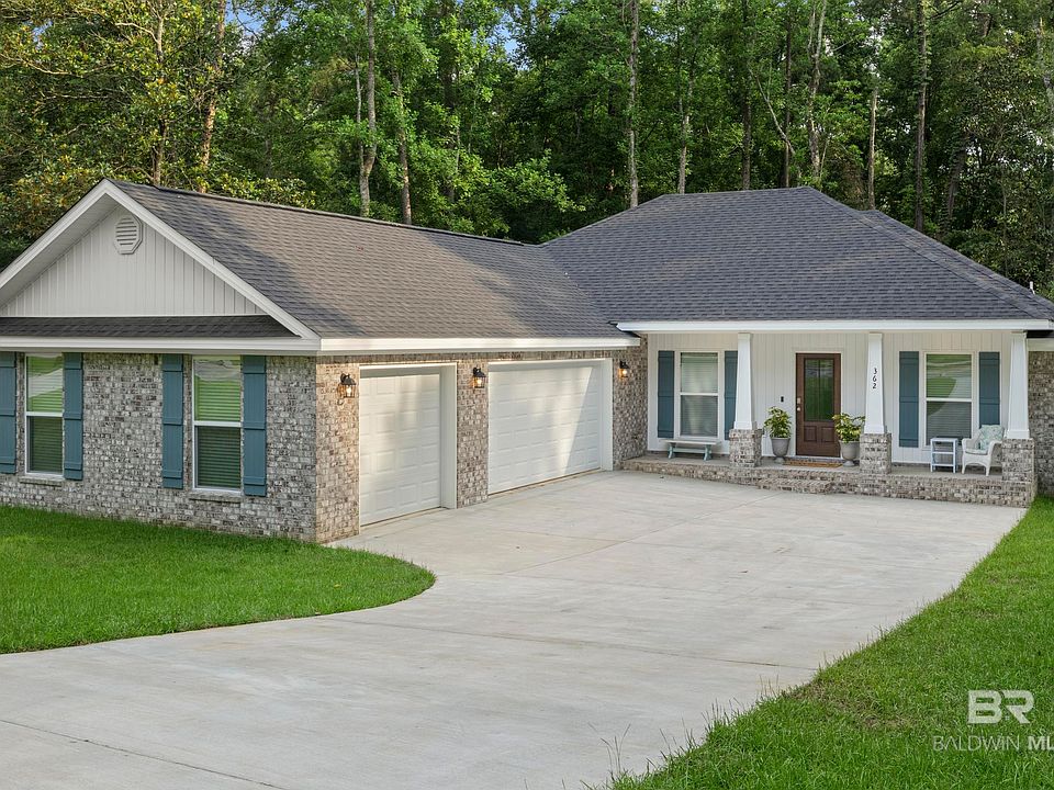 Welcome to your dream home! This brand new, brick home boasts a thoughtfully designed layout with 3 bedrooms, 2.5 bathrooms, and a versatile flex room off the foyer that leads to the living room with vaulted ceiling and open floorplan layout. Home features a split floor plan ensuring privacy and comfort. Enjoy a charming front porch and a cozy back porch, ideal for relaxation and over watching the activities happening in the generous level private backyard oasis. Additionally, the home features Granite Countertops in kitchen and all 3 bathrooms, LVP throughout-NO CARPET, a drop zone area off garage entrance, and a Spacious 3-car courtyard garage. That fits a truck with 6' lift on 35's...Perfect for extra storage, room for a workshop, home gym and more. Home conveys all kitchen and laundry room appliances a hard wired Ring Doorbell and At&t fiber optic internet router. also 1/2/10 yr Builder Warranty on home as well as 1yr Termite Coverage. This home is in walking distance from one of the three neighborhood pools and playground. Enjoy access to a variety of top-notch amenities, including horse stables, tennis courts, a golf course (where residents do have to pay green fees), boat ramp and more. Situated in the heart of Daphne, you’ll enjoy convenient access to local shops, dining, and entertainment. Don’t miss out on this incredible opportunity to own a home in this vibrant community. Buyer to verify all measurements and any other listing information that they deem important to the buyer's satisfaction during inspection contingency period. Buyer to verify all information during due diligence.