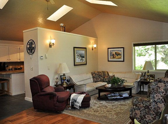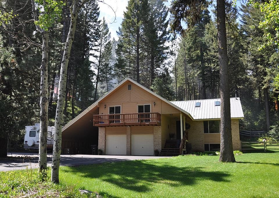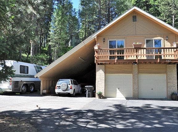 Spacious home on beautiful wooded lot across the street from the River - 3 bedroom, 3 bath, Stainless steel appliances, hardwood floors, skylights in living/dining area. This is a perfect home for a large family with a covered patio off the kitchen, very private fenced back yard and natural landscaping. Lower level- large family room with wood burning fireplace, exercise room/den/storage area with bathroom that could easily be converted into another bedroom or two, laundry room. Upper level master suite with wood burning fireplace, remodeled bath - large walk-in granite shower, double sink vanity. All bedrooms have a deck to enjoy the sounds of the river from.Two car garage, carport for all the recreational toys. This is a bargain at under $142/sq ft.
