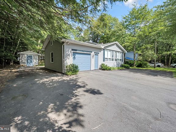 Nestled in a serene Poconos Lake community, this deceivingly large home presents a modest facade that belies its expansive interior. Upon entering, the true size of the home is revealed. A grand stone fireplace anchors the living area, providing a warm inviting focal point, large eat-in kitchen w/stainless appliances, formal dining room which is perfect for entertaining. The main level also includes a primary bedroom w/sitting area & bath. The upper level includes two spacious bedrooms & a full bath. One of the standout features of this home is the expansive sunroom that leads to a large deck w/hot tub giving you a spot to unwind while enjoying the natural beauty of the surroundings. Additionally, the property includes a shed that matches the home and also the lot next door which is .29 acres. The expansive backyard is perfect for gatherings, featuring a fire pit where you can enjoy evenings under the stars. This home enjoys a prime location just across the street from the community's outdoor pool, providing convenient access to summer fun.