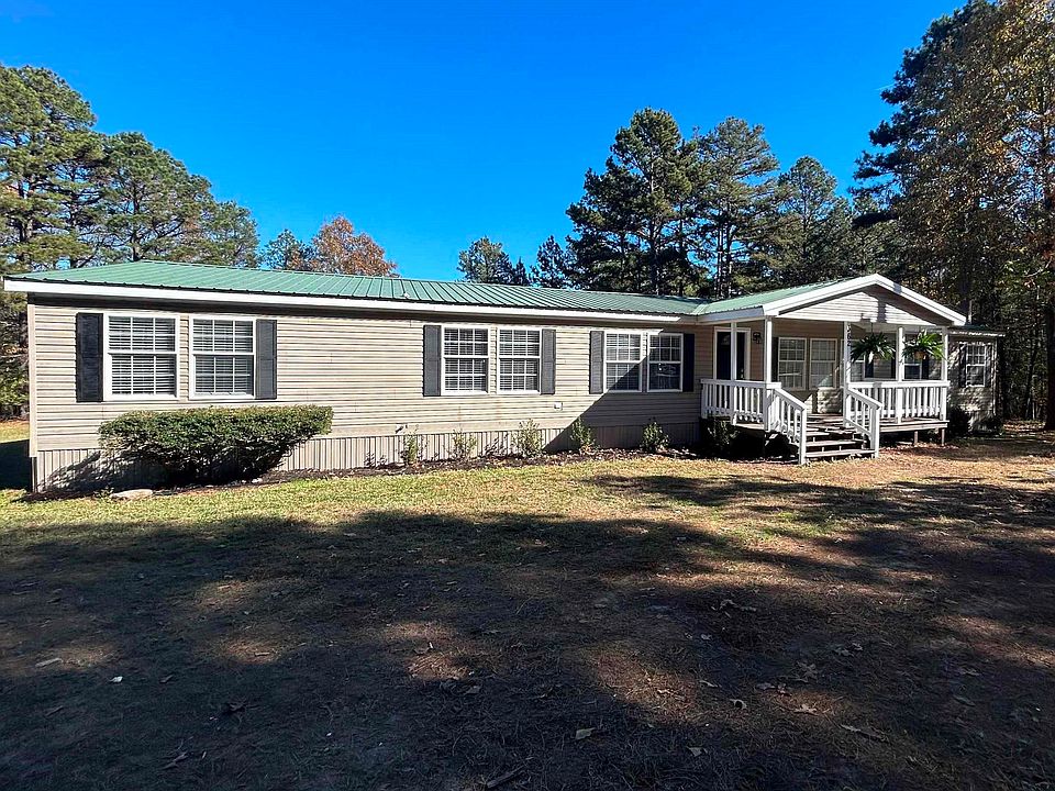 Roomy, open concept manufactured home with a beautiful front porch on a permanent foundation with 3.85 acres is completely remodeled and ready for the next family to call it HOME. If you are looking for privacy and a nice home, this is it! Open concept and split floor plan make this a perfect home for first time buyer, retirees or anyone who wants to live in the country in a nice, affordable home. Privacy along with all new floor covering, brand new HVAC and hot water heater with a deck and metal roof plus beautiful woods are waiting for you. The inside of the home has a magnificent master, huge kitchen with many cabinets and a FARM sink, two Lazy Susans, double oven, blinds, wood burning fireplace and much more! Do not wait! The home will sell quickly! Make your appointment NOW!