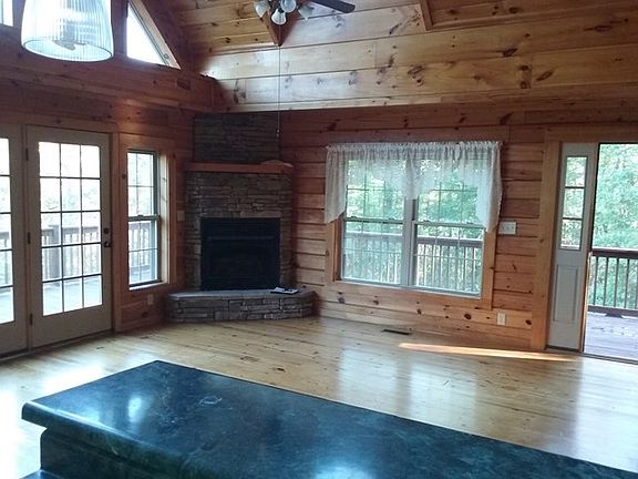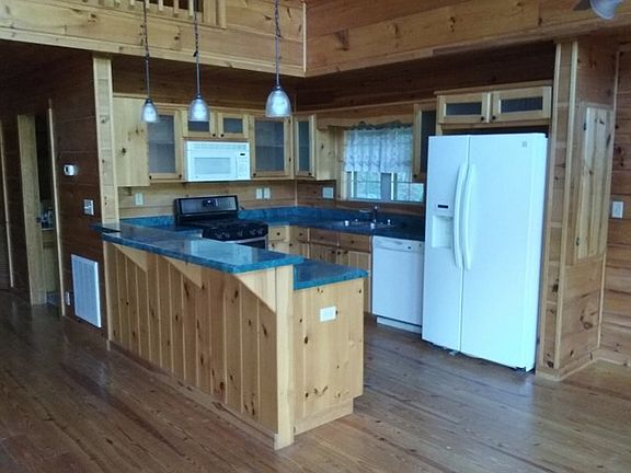 Beautiful Log Cabin located in the foothills of Western North Carolina Features: 3 BR, 3 Bath 1 1/2 story with a finished basement and separate 2 Car Garage with breezeway. 2 kitchens, Huge rooms, Wood and ceramic tile floors. Lot's of windows, Wrap around deck. 1st floor Master, Living room with a gas fireplace. Ship-Lap. Ceiling fans, Kitchen with lots of cabinets, Gas stove and dishwasher, Disposal, side by side fridge, Huge Loft, Basement level includes kitchen , dining, family room, gas stove, full bath, Storage room and a Br. and or bonus 25 x 18. 6 room. This home has a park like setting with beautiful landscaping. Over 3,000 living area.... and a stream on the property to boot. About 2 acres. Welcome to Hidden Lake!