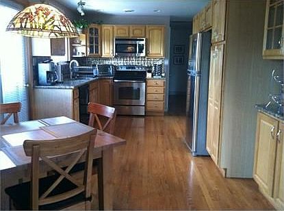 ONCE YOU STEP INSIDE YOU WILL SEE HOW WELL THE OWNERS HAVE MAINTAINED AND CARED FOR THIS LOVELY PROPERTY MODERN, BRIGHT AND CHEERFUL. EVEN IF YOU ARE NOT THE COOK YOU WILL appreciate the granite countertops, s/s appliances and sink. All new in 2012. The living room is spacious w/ full wall of built-ins, slider to deck and w/w carpet.Dining room gives you ample room to entertain and not feel crowded. There is a good open floor plan. The house is efficient and money saving since installation of double windows and boiler/a/c (2009) roof (2008) All this with a lush yard and a flagstone patio to relax on. Spend less money and time in your car driving because you will be only 1 to 2 miles from school, Dr., bank, golf, market, ice cream and more. See the photos on line for more info.