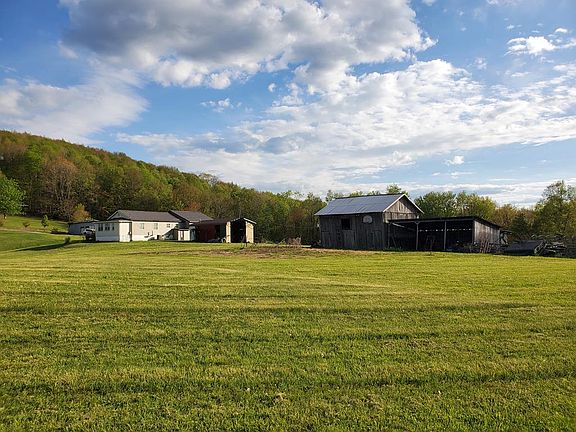 Almost 43 acres with beautiful views, if you're looking for a place to start a farm or just want some privacy this place is it, small pond, storage buildings/garages, old barn, and Ranch style home offering equipped kitchen, formal dining, spacious master bedroom, & 2 additional , 2 baths, tons of storage, covered porch, attached 2 car garage, and canning kitchen in the basement.