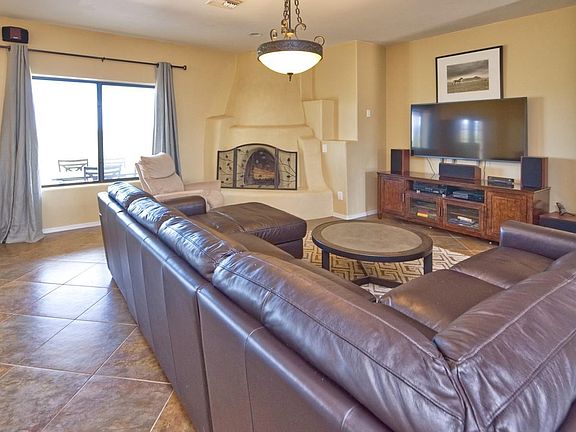Awe-inspiring panoramic mountain & valley views from this custom Santa Fe home & 700 sq ft heated & cooled guest house. Unparalleled privacy & grandeur. Main home features open concept floor plan with 2 living areas showcasing a cozy beehive fireplace. Imagine your next gathering in this glorious dining room at the heart of the home. Kitchen features custom tile counters, rich rustic wood cabinets & stainless steel appliances. Spacious master retreat features private en-suite office & spa-like master bath with jetted tub. Peaceful, tranquil & grand. Split floor plan offers over-sized guest bedrooms. Conveniently located laundry room has sink & huge pantry. Extended patio for year-round outdoor living. Amazing guest house with full kitchen, bedroom & bath. Huge fenced garden area.