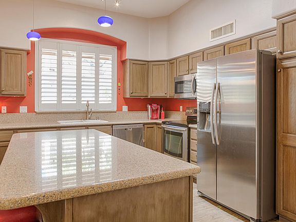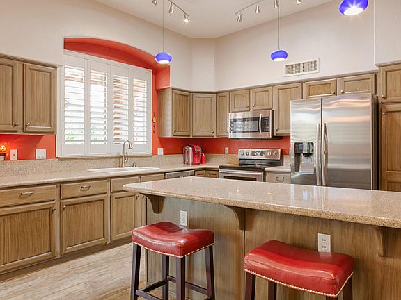 Modern, Clean & Comfortable, this home feels like new with an open-concept floor plan and tasteful upgrades in all the right places. No wasted space in this move-in ready 3BR, 2BA, PLUS a Den/office. Split bedrooms, plank tile & wood lam flooring throughout- NO CARPET. Classy kitchen cabinets w/newer (2015)appliances and updated lighting. Shutters on interior windows, feels light & bright inside. Master bath has dual vanities and separate tub/shower, and walk-in closet. Sliding doors from Master BR to private back patio. Newer Exterior and Interior paint in today's current colors. HVAC on semi-annual service plan. Backyard has extended patio for outdoor enjoyment. Monterra Hills is a great community w/ great schools, near shopping/restaurants/movies. Homes are selling fast--Don't miss out!