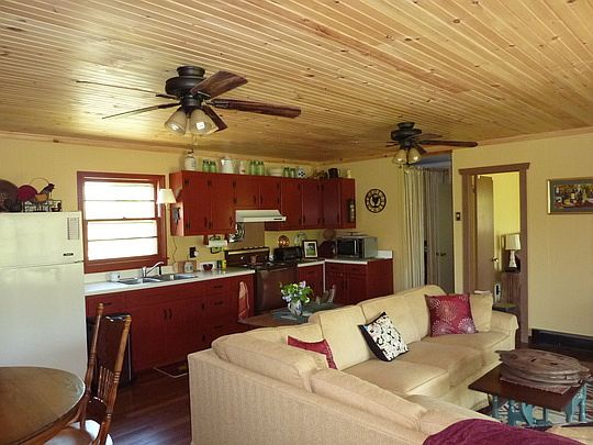 This 2 bedroom, 1 bath home is located in the Dugspur area of Carroll County, VA. The home sits on 2.5 partially cleared acres with a great deal of privacy. (See attached aerial image) The large, covered front porch yields great shade and looks out over the manicured front lawn. The central living area is a very large room containing the kitchen, dining and living areas. There is a bedroom on each end of the house with the living space between giving both bedrooms nice privacy. The master bedroom is large enough to have its own sitting area looking out to the front porch. This home could be purchased with most of the furnishing currently in place with an appropriate offer.