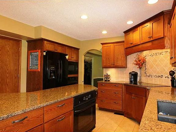 Great NE neighborhood & location on a quiet cul-de-sac makes this home a top choice! You will be impressed with the updated custom kitchen featuring granite counter and huge island, can and under counter lighting, built-in media center, built-in double ovens & smooth cooktop, plus tile backsplash and flooring. The large Family Room w/wood-burning fireplace features an entire wall of gorgeous stone. A tiled entry foyer leads to the formal LR & 1/2 bath w/a formal DR nestled between the Living Room and Kitchen. Upstairs is a spacious master suite w/dual sinks and whirlpool tub plus 3 other bedrooms and full bath. The lower level provides a nice Rec Room and large storage room. Extras include: UL and LL laundry hookups, huge freshly stained deck w/built-in seating, shed, whole house fan, 3 stall attached garage, cement driveway & spacious yard. Note: LL sq ft is approximate.
