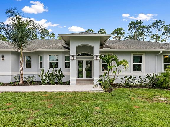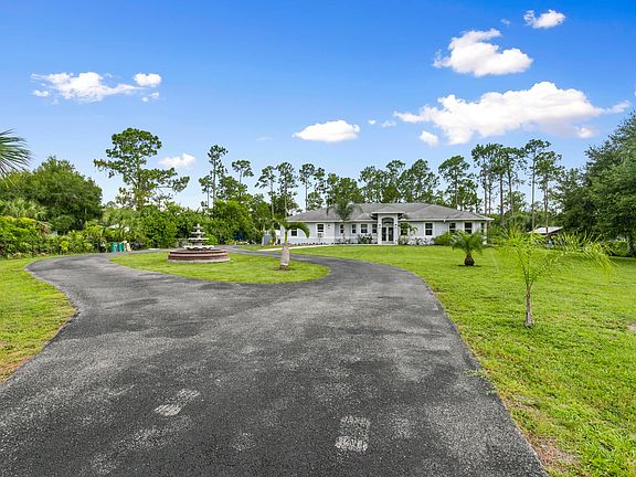 Welcome to this stunning 5-bedroom house situated on a spacious 2.73-acre lot. As you enter through the gated entry, you'll be greeted by a beautifully cleared and meticulously landscaped park-like yard, adorned with palm trees and majestic pine trees. The fenced-in yard ensures privacy and security. Step inside to discover a recently remodeled kitchen complete with modern appliances, sleek countertops, and ample storage space. The house boasts three remodeled bathrooms, each thoughtfully designed with contemporary fixtures and finishes. Enjoy peace of mind with impact glass in all windows and sliding doors that provides protection and energy efficiency as well as Life-proof tile floors, that will maintain thru any foot traffic. 2-AC units (1 and 3 years old) ensure year-round comfort. The well was drilled extra deep and just serviced. The whole house is reverse osmosis water throughout. The garage features a convenient workbench and a shelving unit, providing space for projects and storage. Step outside to your own oasis, featuring a sparkling saltwater pool and two inviting hot tubs, perfect for relaxation and entertaining. Plenty of Room for workshop, guest house or RV. No HOA.