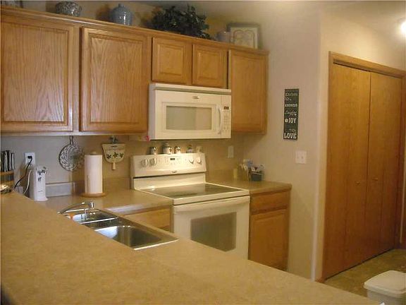 Super end-unit condo that's like-new. Clean and well-cared for condo is ready with immediate possession. There are 2 bedrooms upstairs, both boasting large, deep closets. The master bedroom, featuring a vaulted ceiling, also has an additional closet convenient for linens. Enjoy sunsets from the living room and kitchen through the sliding glass door. Charming main floor living area with a breakfast bar . The main floor laundry center is off the kitchen. All appliances stay, including washer and dryer. Lower level has daylight window and is ready for new owners to finish. Wood deck with privacy screen. No buildings or homes behind or to the south. 1 stall attached garage with 2 remotes and keyless door opener pad. Additional parking area north of condos. 2 pets allowed up to 90 lbs. each.