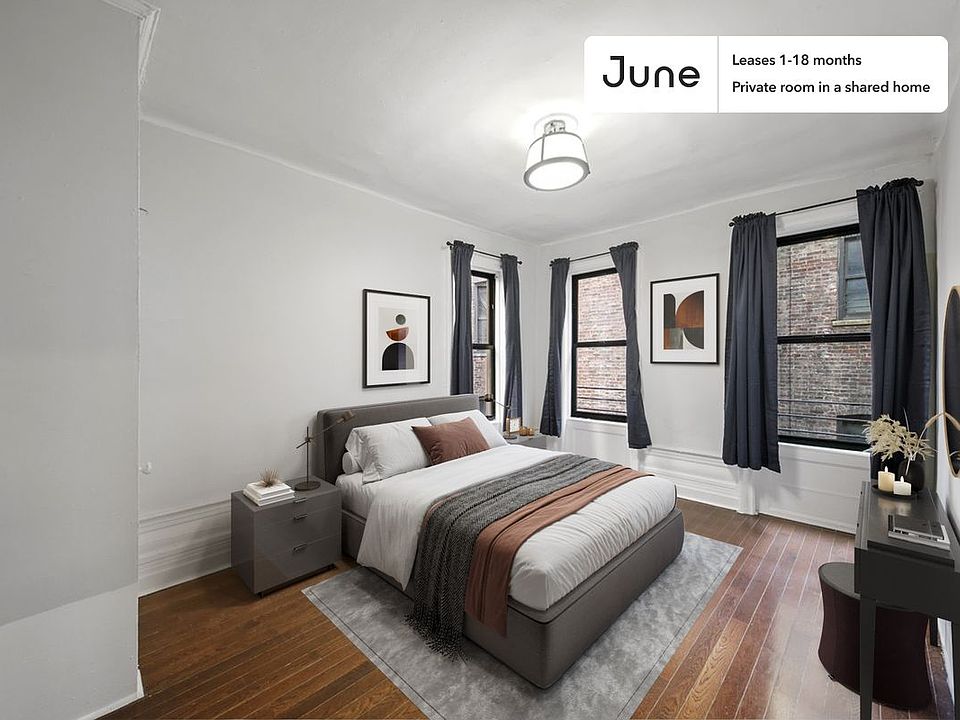 This Queen room in Hamilton Heights is available on a 12 month lease or a flexible short term (31 to 364 days) lease. You pick your custom start and end date. Monthly rent rate is determined by furnishing preference, move-in date and move-out date. Speak to a June representative for recommendations on the best stay duration for the lowest rate.