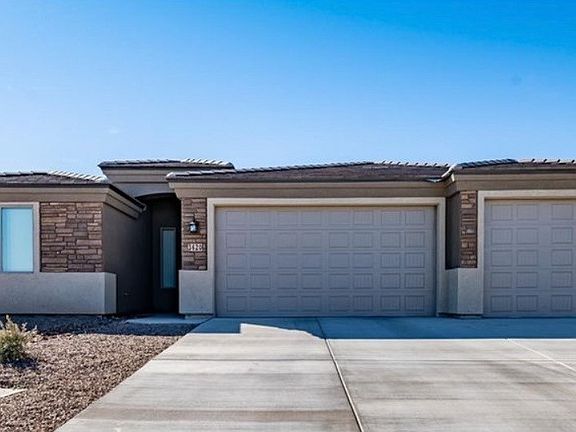 Looking for a gorgeous nearly brand new home without the wait? This beautiful 3 bedroom, 2 bath home has a 3 car garage and is on an oversized corner lot with RV parking. The owner has added concrete paving for the RV parking. The open floor plan is spacious with a large kitchen island, lazy susan, maple cabinets, granite countertops and pantry. Master suite has dual sinks, step in shower with seating and a big walk in closet. Blinds installed throughout! Large finished 3 car garage has 856 square feet. The front yard is fully landscaped with an automatic watering system. The back yard is private with a drive through gate and new lanscaping of decomposed granite and faux grass. Please call for your personal tour. Welcome Home!