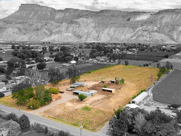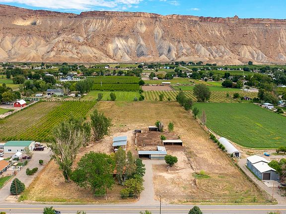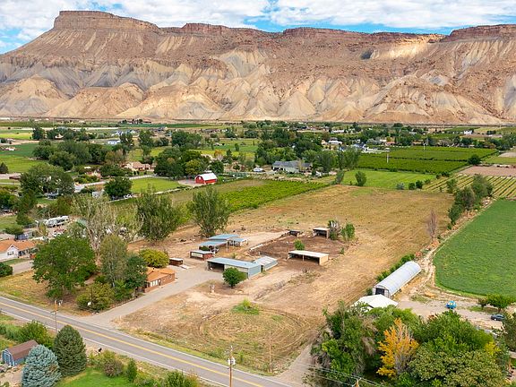 Wonderful property in the heart of Palisade! With nearly 7 acres of irrigated ground, it is ready for you to make it your own!! You will love the views and privacy with this 4 bed (1 could be used as office), 2 bath, nearly 1900 sq ft home. Enjoy the spacious living area, formal dining & breakfast nook and large covered back patio with up close and personal Bookcliff and Mt. Garfield Views! Wood-burning fireplace, tons of built-in & basement storage. Outside you will find a 2 car carport w/ huge shop, several outbuildings, corrals, covered parking area for equipment. Large pasture area that is ready to go! Rare Palisade find with limitless possibilities.