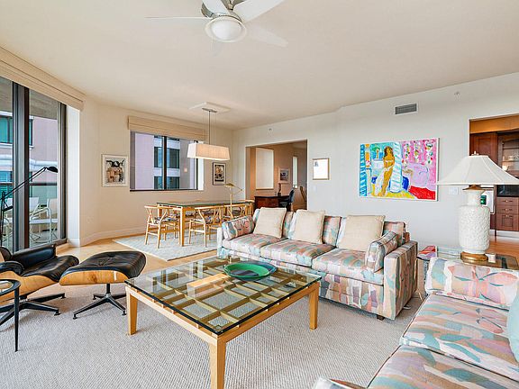 Look no further! This 7th floor residence at the Landmark at the Gardens offers sunny southern exposure with stunning lake and city views. This 2,622 square foot condo with 3 bedrooms 3 baths, plus a den and living dining combination feels more like a home. It's a front to back unit with two balconies. Spacious formal foyer entry, with wood floors throughout the main living areas. Large living/dining room combination surrounded by windows and sliding doors, with fabulous lake and city views from the balcony in the back of the unit, while you have beautiful city and ocean line views from the front of the unit off the family room. The floor-plan was altered for better flow from living to family room. Both living room and family rooms have remote controlled Hunter Douglas... (See Supplement)