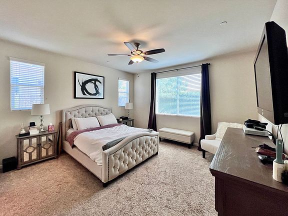 3 bedrooms | 3 full bathrooms | 2,013 sq ft | Built in 2017 Wilson home. Single story with additional Flex space, can be used as an office/game room/etc. Energy efficient, including Solar Panels. Open floor plan including a spacious great room, kitchen, and dining area. Tile flooring throughout main living areas, carpet in bedrooms. Kitchen features extended island / breakfast bar with granite countertops, and expanded cabinet space, walk in pantry, and wet room area with built-in desk. Stainless steel appliances including a built-in microwave, gas range stove, oven, dishwasher, and disposal. Primary bedroom features a spacious walk-in closet with built-in shelves, ceiling fan, and a beautiful full bathroom with granite countertops, walk-in shower, double sinks at vanity, separate toilet room, and a soaking tub. Interior laundry room featuring a washer and dryer. Attached 2 car garage. Backyard features a covered patio and spacious cemented area, with slow grow landscaping. Yard Care is included. Solar usage at no cost to resident. Pets considered with pet rent and pet deposit. Resident pays PG&E, TrueUp, and Clovis utilities. Credit score above 650 REQUIRED. Non smoking. Renter's insurance is required. Clovis Unified School District. Cross streets Ashlan & Leonard. Walking trails and multiple parks/playgrounds in neighborhood. DRE# 01901101. All information is deemed reliable but not guaranteed and is subject to change.
