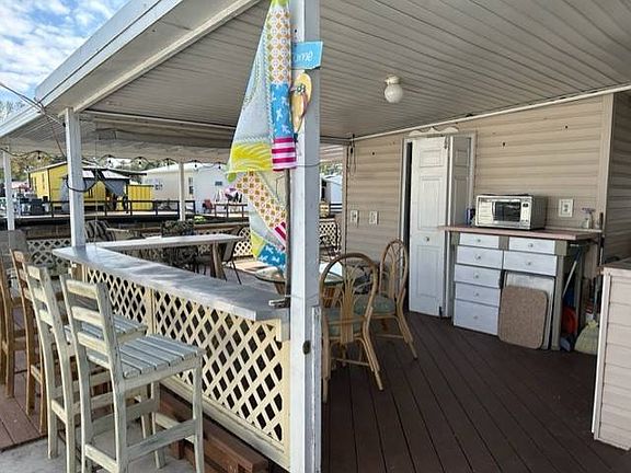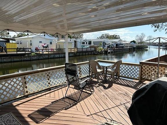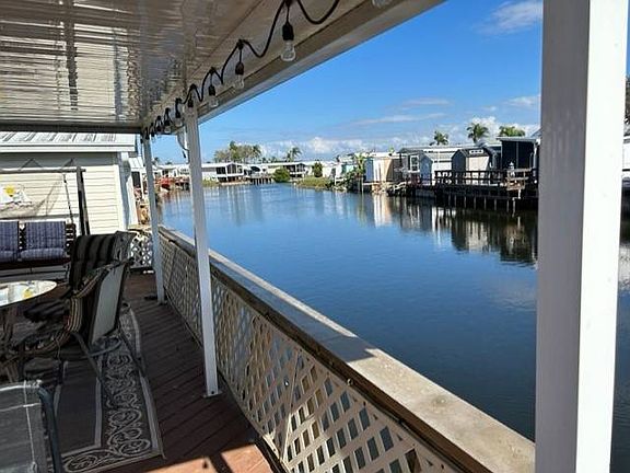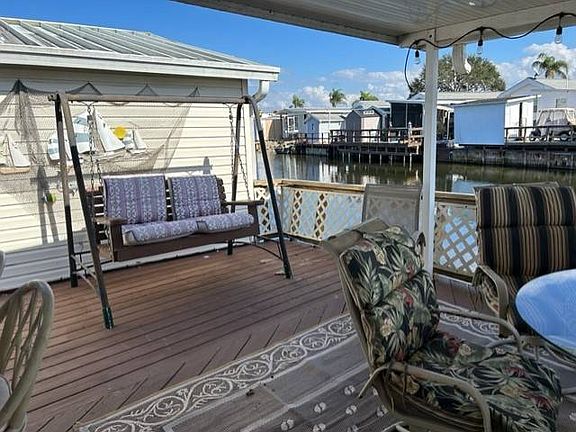18+ Community on Canal leading to Bay. Hawaiian Isles is an upscale Pet Friendly community with fantastic amenities and social events. Many new friends to meet and show off your new home. This One of a Kind Custom home has a large deck area on the canal perfectly suited for social activities with stunning water views. Completely remodeled 1 bedroom, 1 1/2 Baths. Fully Furnished including a pull out sofa bed for quests. Custom built storage cabinets everywhere, there's even an attic for storage. Large side by side 2 car carport and screen room in front. In addition to being right on the water, this home is conveniently located just across from the POOL, Shuffle Board, Horseshoes and clubhouse $585 mo. lot rent.