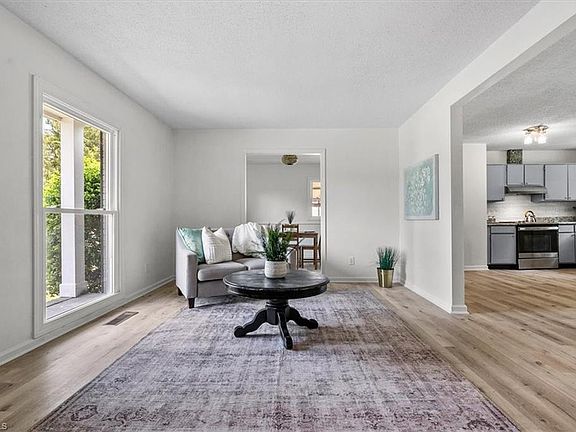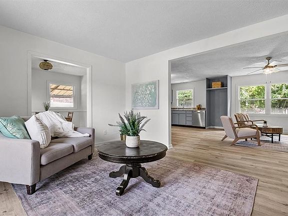 This charming renovated 3-bedroom, 2-bathroom one level living home is a perfect starter home or investment property! Drive into the circle drive and walk onto the large covered porch to step inside and discover the open floor plan, perfect for modern lifestyles and entertaining guests. Living room, dining room, huge open kitchen, and keeping room area. Large laundry connects to side door with covered area. The recent upgrades include new LVP flooring throughout, new paint, light fixtures a brand new HVAC system, 11 new windows, and new bathroom vanities. Large flat backyard for entertaining or play. Close to shopping, restaurants, parks and more!