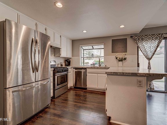Completely turnkey spacious end unit 3 Bedroom + enclosed loft for 4th room or office (no closet). Best value in Ventura County with over 1900 square feet and under $500,000 in excellent condition. Updates include: remodeled kitchen with Quartz Countertops, remodeled bathrooms, wood-like flooring, scraped ceilings, recessed lights and so much more. Separate living room and family room with fireplace. Interior laundry and attached 2-car garage with direct access. Large master suite with vaulted ceilings, walk-in closet and attached bath. Vinyl fencing around large patio for BBQ's, Community pool & spa. Plenty of greenbelt area to play and enjoy. Newly resurfaced community pool (not in use at this time). The SIlverado complex is a nice tucked away community desired for the size of the properties, plenty of green belt area, and great value. Close to the area's many schools, parks, Oxnard Community College, and minutes from the beach.
