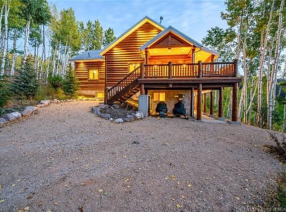 Custom log cabin w/ all the upgrades located mid-mountain on the snow plow route. Cabin has been tastefully decorated and feels and looks brand-new. Lots of recent updates, and impeccably maintained. Lot backs privately owned land that will never be developed= SWEEPING VIEWS & privacy. Open kitchen/dining/fam room for easy main-level entertaining, main level master suite, 2nd master suite in bsmt, 6 adult-size bunks in bunk room, dual privacy showers for guests in large bath for community style-convenience, toy garage, wrap-around Trex deck! "Control 4" home automation system that remotely controls lighting, security, heat & more. Kenmore pro-style SS appliances & commercial grade fridge with huge kitchen island space. 10' basement ceilings. Offered furnished and turn-key. Enjoy epic Ntl Forest snowmobiling, trails, wildlife & only 1 hr soSLC/Provo! * SNOWMOBILES available/negotiable but not included at sales price.