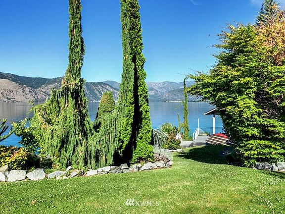 Imagine Lake Chelan as your infinity pool, framed by spectacular mountain views. This classic Chelan waterfront home and property has park-like grounds, 65' of waterfront, shared dock with jet ski lifts. Two of the valley's favorite north shore wineries are a short walk away. A copper-roofed cupola is the identifying feature of this home from the lake and it adds a cozy, view-filled charm to the master bedroom. Lot adjoining this property w/65' waterfront and dock w/lifts available MLS#662111